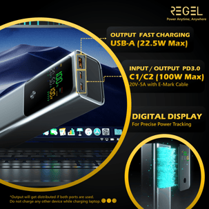 100W Bi-Directional Fast Charging: Ideal for laptops and high-powered devices